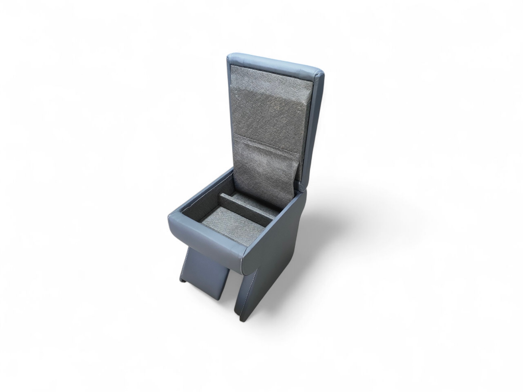 • Функціональність досягається завдяки використанню поршневих завіс з фіксаторами. Завіси фіксують кришку підлокітника у відкритому положенні, а також дотягують її при закриванні. Всередині підлокотник для Кадді містить відділення для речей, які завжди повинні бути “під рукою” у водія.